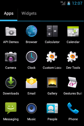 這次的Android 4.0 Emulator執行起來順暢多了,不像Honeycomb這麼慢鈍,而且Honeycomb Emulator在我這台電腦上還無法開出Application List,不清楚原因是什麼,但其他部份的操作速度也慢到讓我懶得去開解決這問題了。