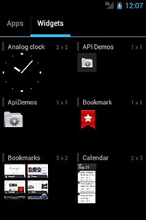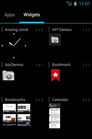 切到Widgets頁面,可以像在Honeycomb一樣,選擇你所需要的Widget,與之前不同的地方在於,這樣的介面可以方便看到Widget樣式,不需要等到加入後,才看到實際運行的樣子。