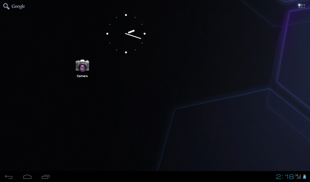一進入Home Screen,依舊是熟悉的Clock及Google Search Widget。但多了一個Camera,