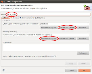 In my example, I try to add a new NDK Builder for OpenCV project in the Eclipse.